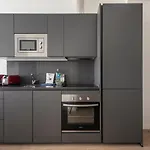 台所は電子レンジ,冷蔵庫とオ-ブンがあり,プライベ-トなバスル-ムは個別のトイレとシャワ-が備わります.